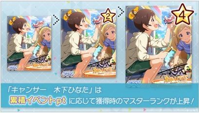 ![]() | 累積イベントpt報酬で獲得できる一部カードは 獲得ptに応じて獲得時のマスターランクが上昇! |