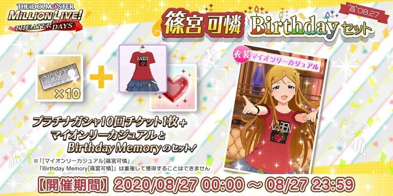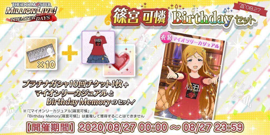 本日2020/08/27は篠宮可憐の誕生日です!誕生日を記念し「篠宮可憐Birthdayセット」が登場!