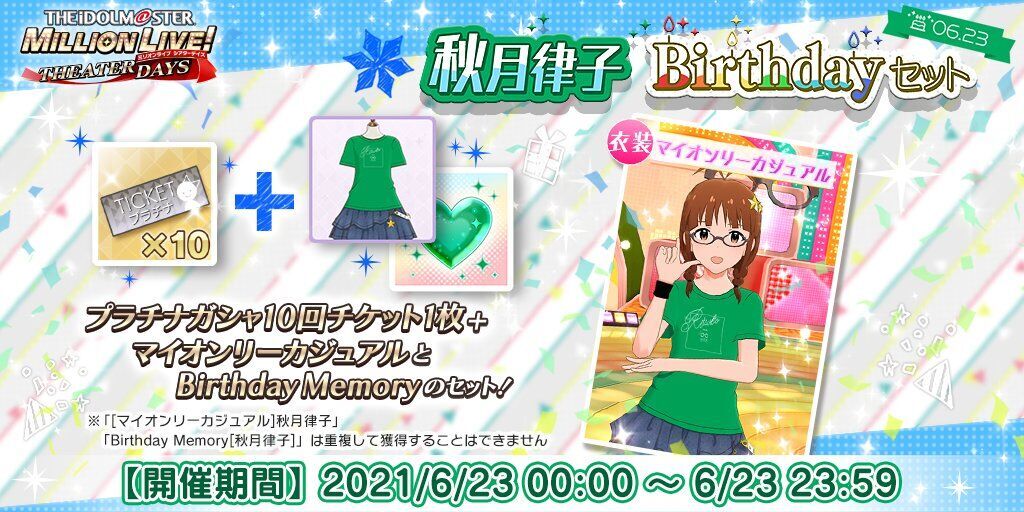 本日2021/06/23は秋月律子の誕生日です!誕生日を記念し「秋月律子Birthdayセット」が登場!