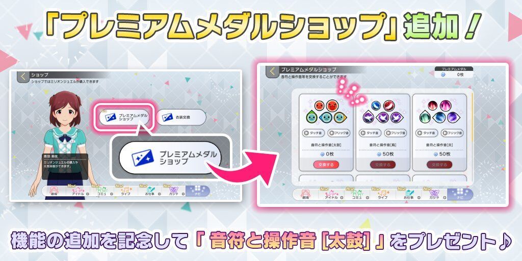 プレミアムメダルショップでは、音符と操作音などを交換出来ます。
