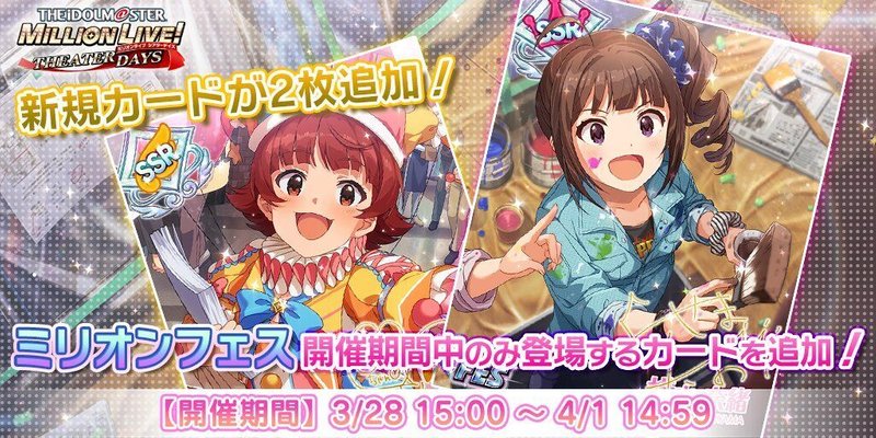 また新たに以下の「ミリオンフェス限定カード」が追加されます!