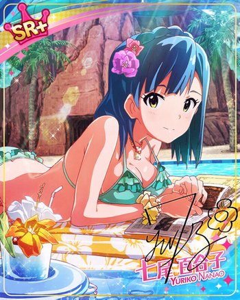 | うう、み、水着なんて、恥ずかしいなぁ……に、似合う、ですか? そんなこと言われたら、ドキドキしちゃいます……。でも……ありがとうございます、○○Pさん……♪ | カードセリフ |