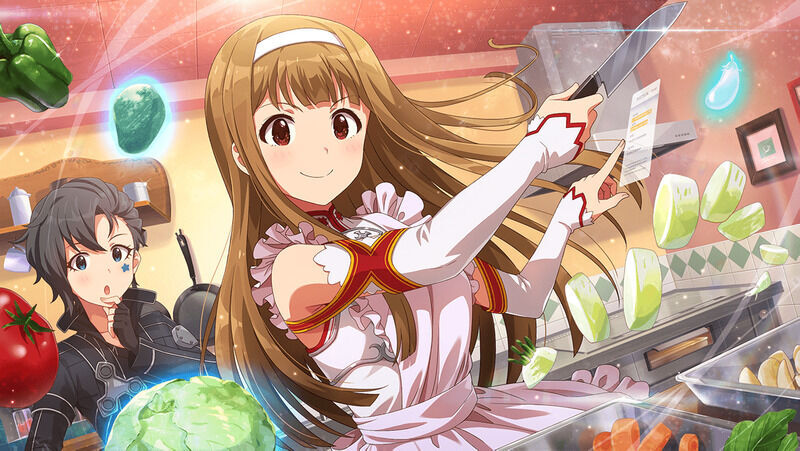 | ナイフを持って、食材に当てれば……。ほら、あっという間にカットできるの!ふふっ、楽しいなぁ♪現実でも料理スキルが使えればいいのに。そしたら……あ、なんでもないっ! | カードセリフ |