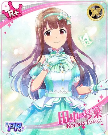| 田中琴葉、18歳、高校三年生です。多くの人を感動させるアイドルになるのが、私の夢です。そのためには努力は惜しみません。 | カードセリフ |