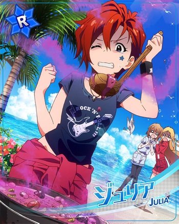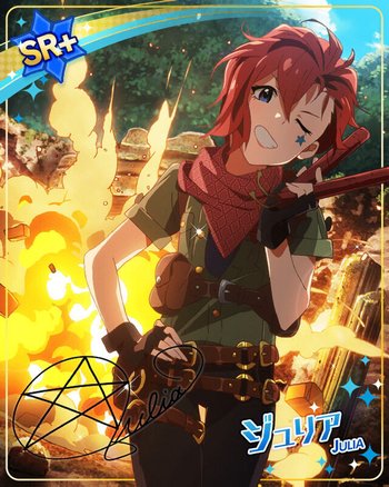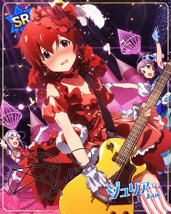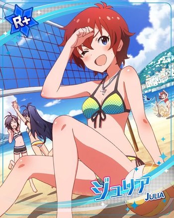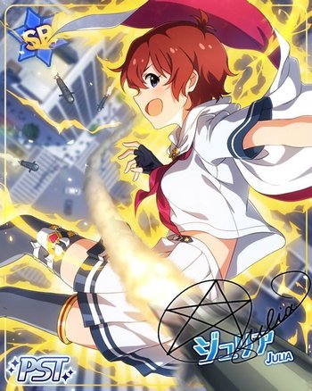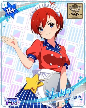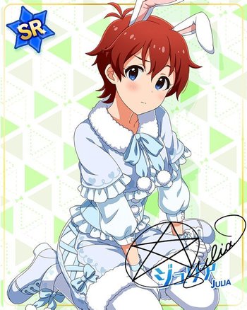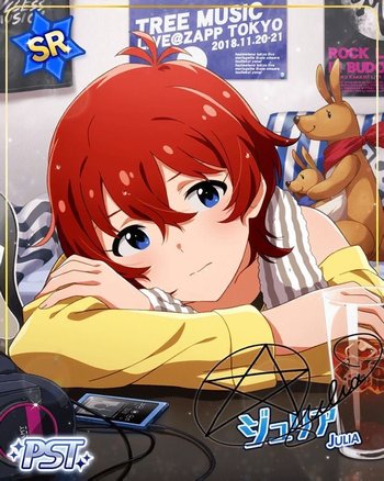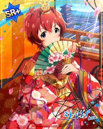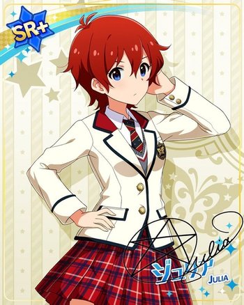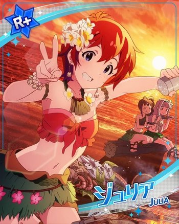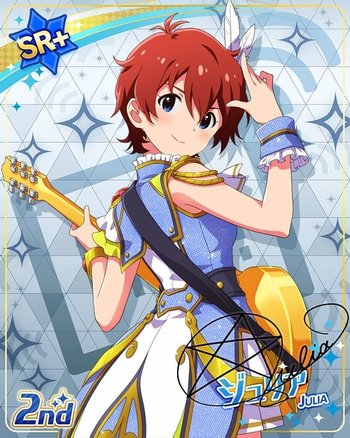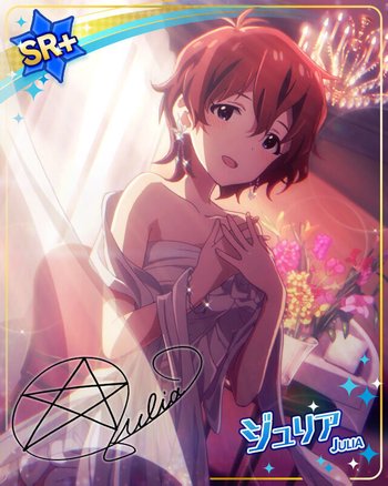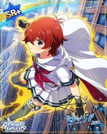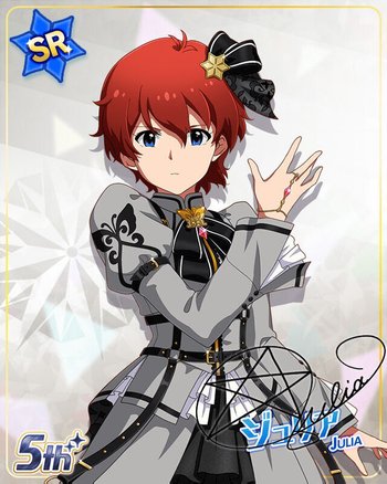 | あたしはジュリア。今はワケあってアイドルをやってる。……心配すんな、やるからには全力で頑張るさ。よろしくな、○○P。 | カードセリフ |