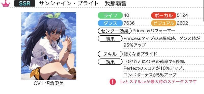 | Princessタイプのみ編成時、ダンス値が95%アップ |