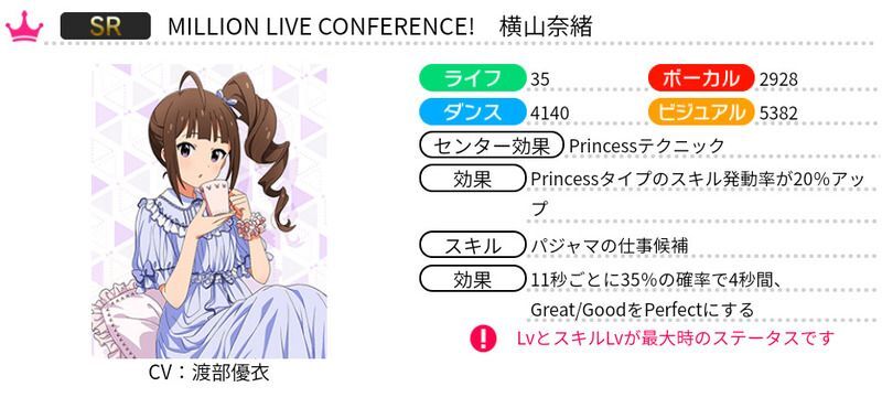 | カード名 | MILLION LIVE CONFERENCE! 横山奈緒 |