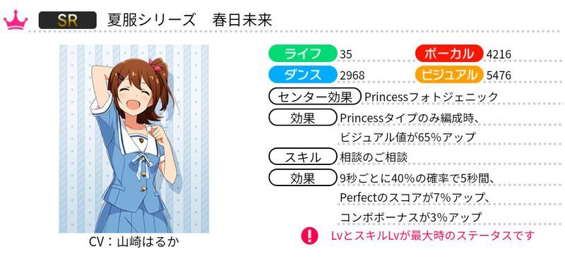 | Princessタイプのみ編成時、ビジュアル値が65%アップ |
