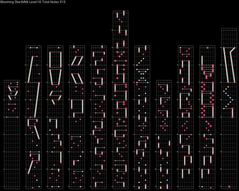 - BPM86と曲のスピードは遅いのだがLv16楽曲だけあってノーツは500オーバーと詰まっているのでそこそこ忙しい