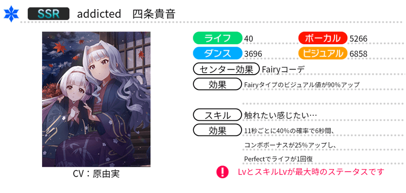 | 11秒ごとに31%の確率で6秒間、コンボボーナスが25%アップし、Perfectでライフが1回復 |