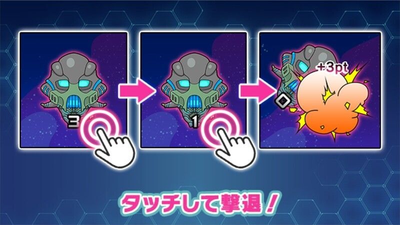 | エイリアン軍をタッチすると耐久値が減少します 耐久値が0になるとptが獲得できます |