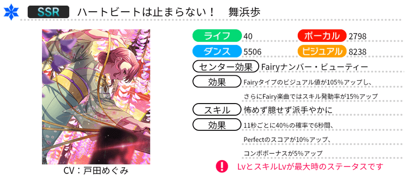 | Fairyタイプのビジュアル値が105%アップし、さらにFairy楽曲ではスキル発動率が15%アップ |