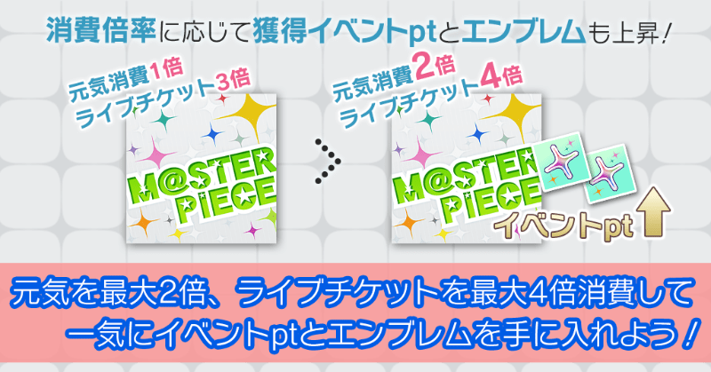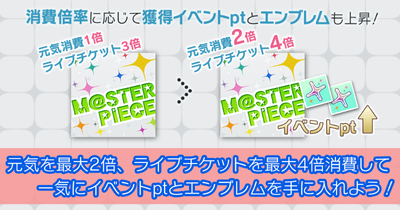 イベント楽曲「M@STERPIECE」を行うことで、より多くのイベントptを獲得!