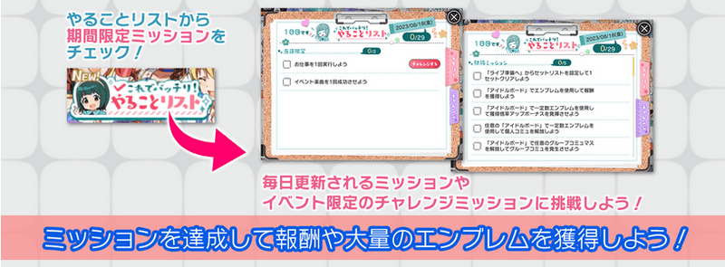 また、チャレンジ項目では、イベント期間を通じて挑戦できるチャレンジミッションを確認できます。