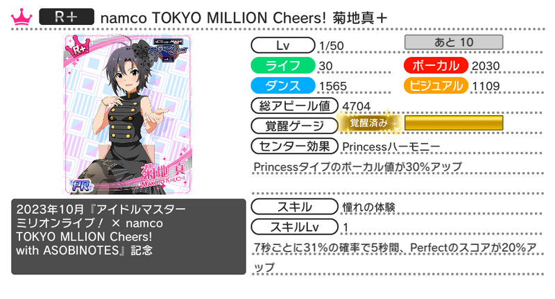 コメント (namco TOKYO MILLION Cheers! 菊地真+)