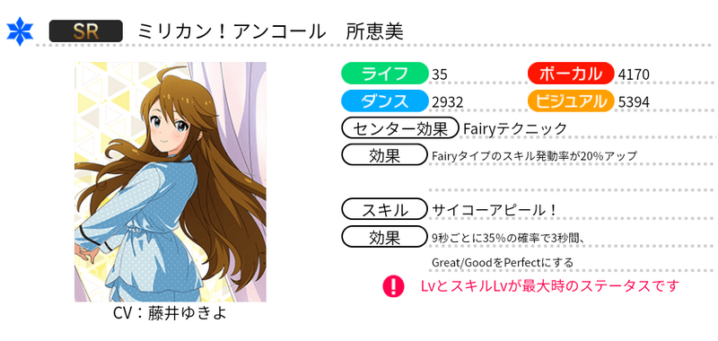 | スキル | サイコーアピール! |