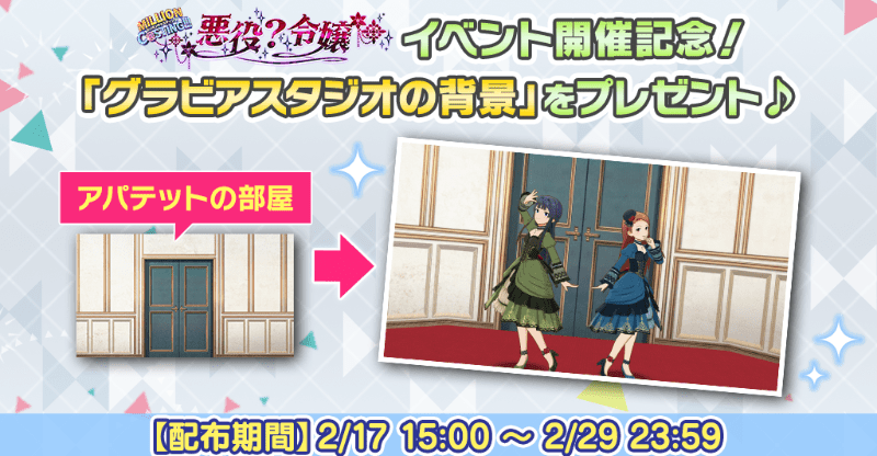 「悪役?令嬢」イベント開催記念「スタジオグラビアの背景&床」をプレゼント(2024/02/17 15:00~2024/02/29 23:59)