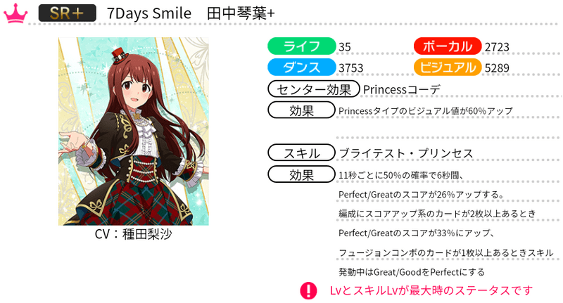 | カード名 | 7Days Smile 田中琴葉+ |