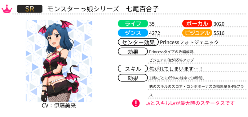 | Princessタイプのみ編成時、ビジュアル値が65%アップ |