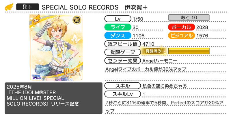 | スキル | 私色の空に染めちゃお |