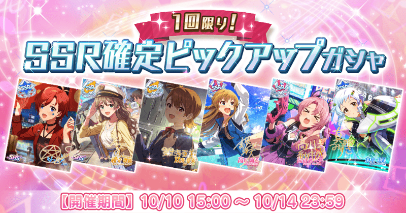 2025/10/10(金)15:00より、「1回限り!SSR確定ピックアップガシャ」が開催!