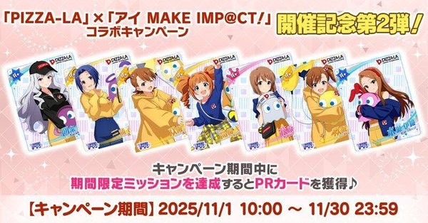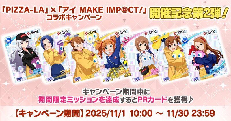 2025/10/15(水)より、『「PIZZA-LA」×「アイ MAKE IMP@CT!」コラボキャンペーン』の開催を記念して、PRカードが獲得できるキャンペーンを実施いたします!