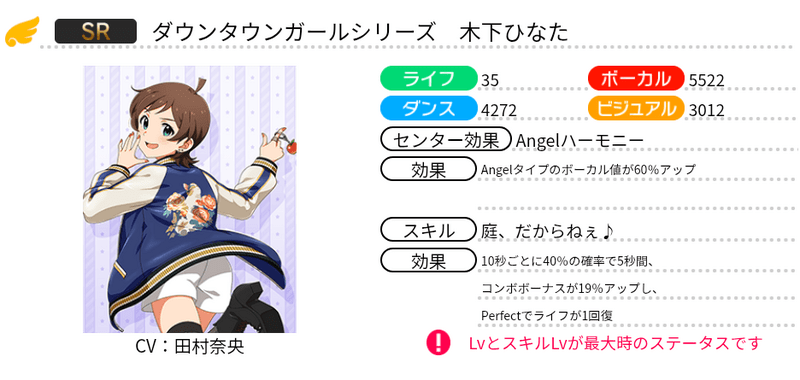 | 10秒ごとに31%の確率で5秒間、コンボボーナスが19%アップし、Perfectでライフが1回復 |