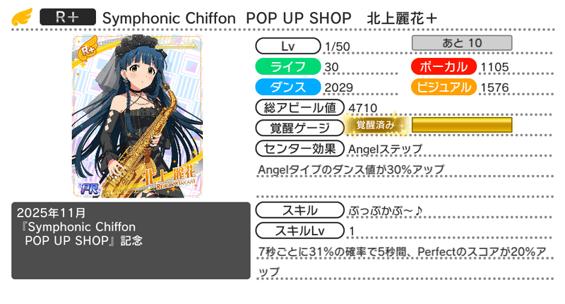 | カード名 | Symphonic Chiffon POP UP SHOP 北上麗花+ |