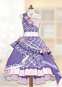 | キュートなデザインに、和のテイストを上品に表現したドレス。甘くて可愛い格子柄に可憐な紫の撫子をアクセントに添えました。 | |||