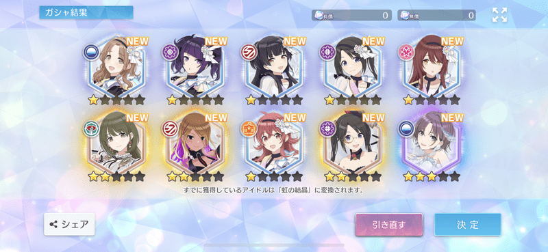 シャニソンではキャラクターガチャの引き直しガチャが実装されており、星3が確定で1人排出されます。