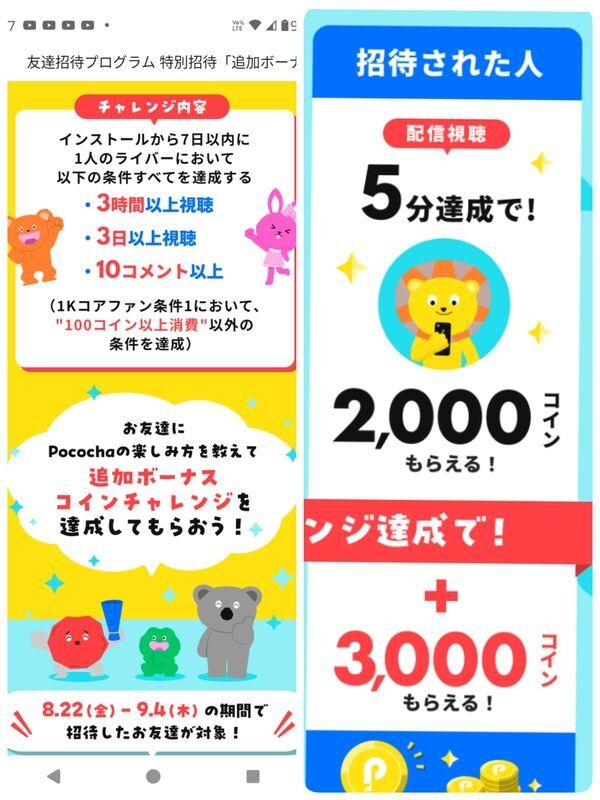 配信5分視聴で最大3500コイン以上貰える限定招待コード