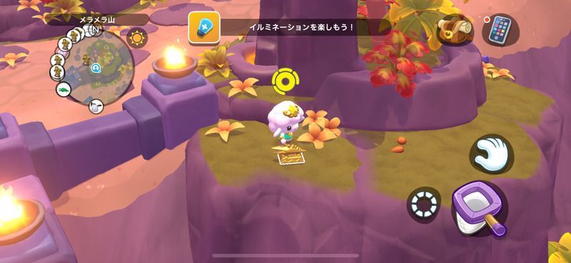 | ② | イエローパワークリスタルを探す ・パズルルーム「ビギナーズ・ブリッジ」 ・パズルルーム「クリスタルの謎」 ★遺跡入口の紫ボタンの一方を踏むと、チョコキャットがもう一方を踏んでくれる ・壊れた橋の先 ┗「お友だちのための家具」の進行が必要 ![]() |