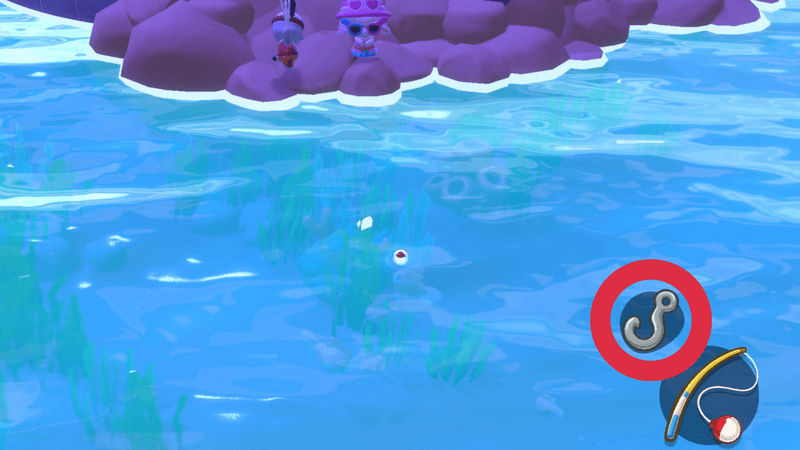 | えさの付け方 | ・釣りをスタートした後、釣りマークの左上のアイコンを押すと付けるえさを選べる ・上を食べ物タグにすると、食べ物のえさ一覧が表示される ![]() ![]() |