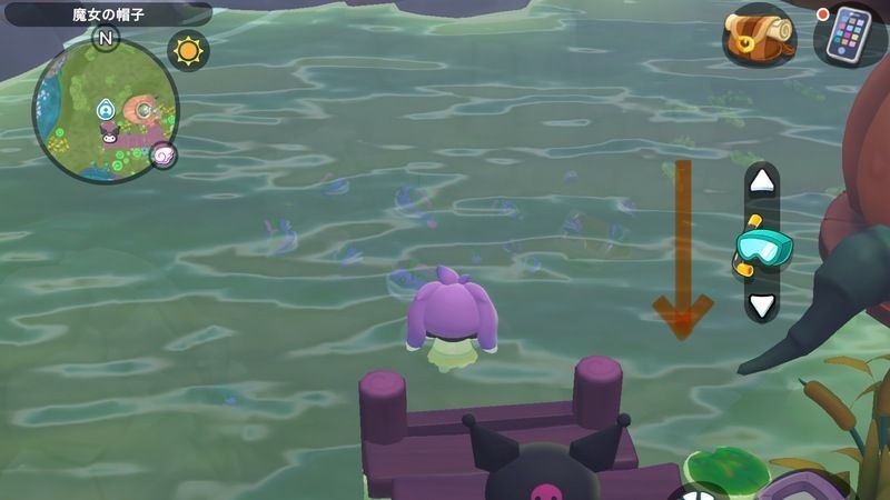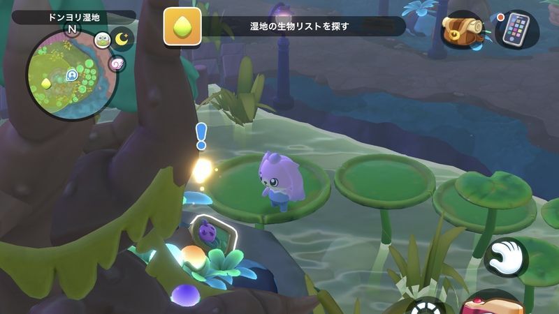 | ④ | スイレンカエルを網で捕まえる ・画面右下の機能を網に変更する |
