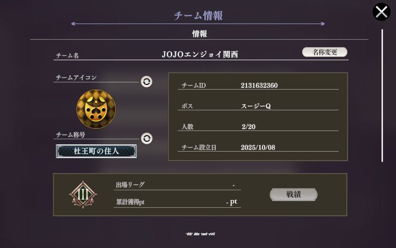 7114日まえ ID:cbp09zoa【チーム名】JOJOエンジョイ関西