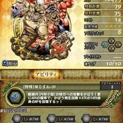 | 〔コスト:2〕範囲内(円形小型)の味方への攻撃をかばう!更に20%(Max.40%)の確率で、かばう発生回数×ATKの120%(Max.140%)自身のHPを回復するッ! | |