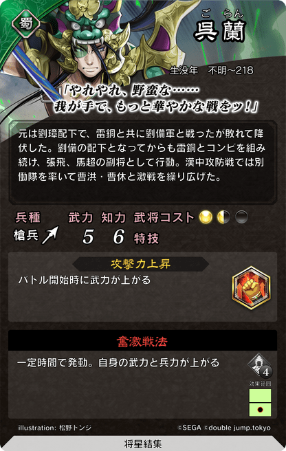 【魁三国志大戦】呉蘭(ごらん)の評価と計略・基本ステータス