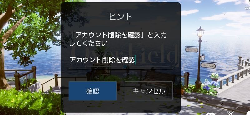 確認をタップした後、入力欄に「アカウント削除を確認」と入力することで削除されます。