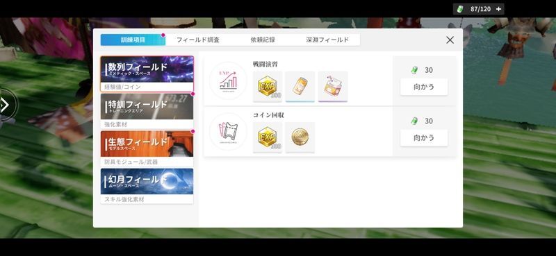 「訓練項目」→フィールド調査から各地の異変フィールドにチャレンジしてみましょう。