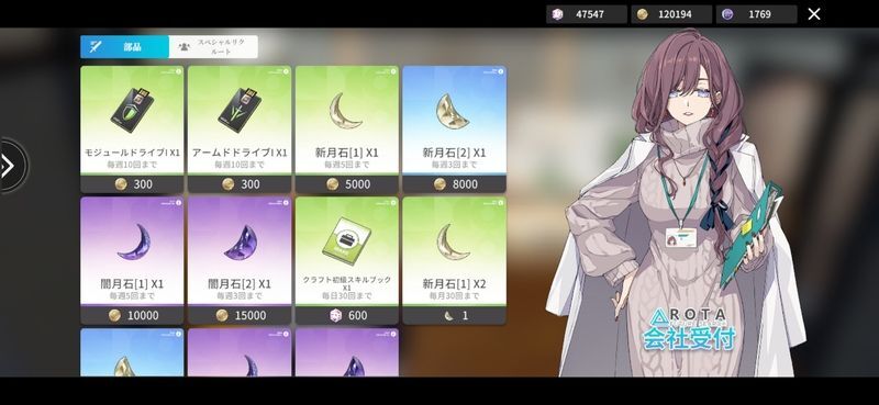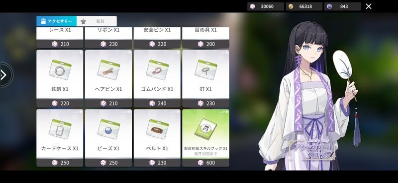 アクセサリー素材が足りない場合はガーデンロータの夕月ショップからにゃんコインで購入できます。