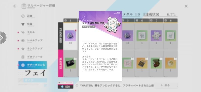 キャラアチーブメントの7で昇進証明書は1つ獲得できることを覚えておきましょう。