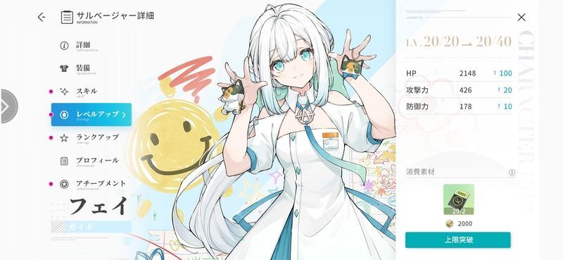 上限までレベルアップした場合、タイプごとの戦闘マニュアルを消費し上限突破することでさらにレベルを上げることができるようになります。