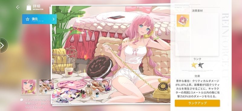 フラグメントは同じフラグメントを素材とすることでランクアップ強化が可能です。フラグメントは主にガチャから獲得するので、キャラのランクアップと同様に入手難易度は高めです。