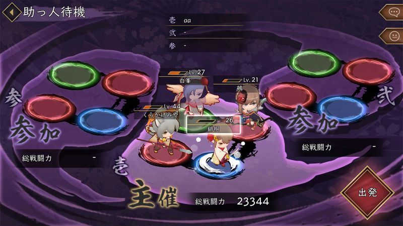 『魔神印章』を使用した協力戦です。今回のアプデから大妖戦は『改修されて祠現地集合』から『ルームに集合』する方式に変更になりました。