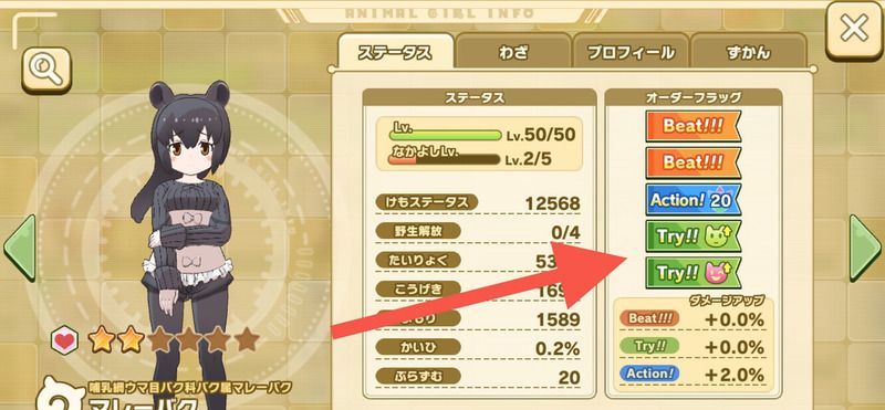 けものミラクルを多く使いたい方はAction!!を中心にフラッグを選択するのも良いでしょう。