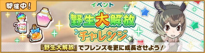 | Lv5:Lv5:味方全体の与ダメージが30%増加する さらにリラックス(青)属性の味方の 「Try!!」のダメージが19%増加する(2ターン) MP:80 けものミラクル+:Try!! |