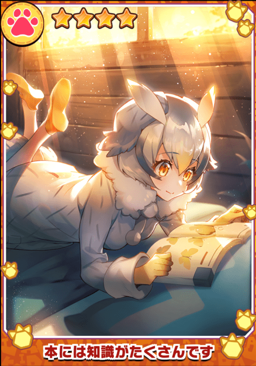 けものフレンズ3のフォト「本には知識がたくさんです」の最大ステータスや特性を掲載しています。けもフレ3で「本には知識がたくさんです」の限凸後の画像や絵師を調べる際にもぜひ参考にしてください。