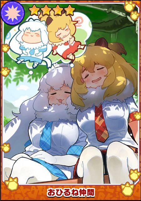 けものフレンズ3のフォト「おひるね仲間」の最大ステータスや特性を掲載しています。けもフレ3で「おひるね仲間」の限凸後の画像や絵師を調べる際にもぜひ参考にしてください。