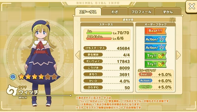 けものフレンズ3の「ウィッチ」の最大ステータスやスキル、評価を掲載しています。けもフレ3で「ウィッチ」の育成やスキル構成、相性の良いフレンズやフォトなどを調べる際は参考にしてください。