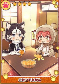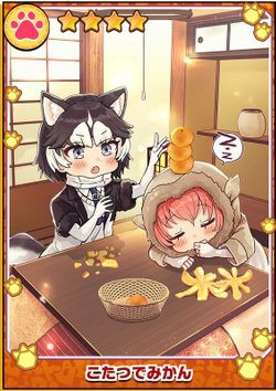 けものフレンズ3のフォト「星4フォトこたつでみかん」の最大ステータスや特性を掲載しています。けもフレ3で「こたつでみかん」の限凸後の画像や絵師を調べる際にもぜひ参考にしてください。